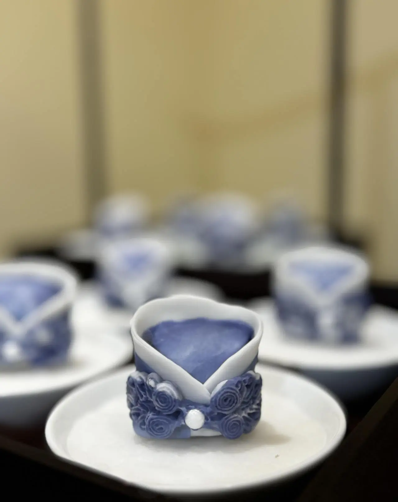如果吃过粤式茶点中的虾饺,再吃京杭上院的江南龙井虾仁饺,就会有耳目一新的感受。京杭上院的厨师把传统炒的龙井虾仁加入黑松露制作成馅料,还通过旗袍饺子的形式展示了烟雨江南的诗情画意。让客人在享受美食的过程中,也能感受中国传统文化。