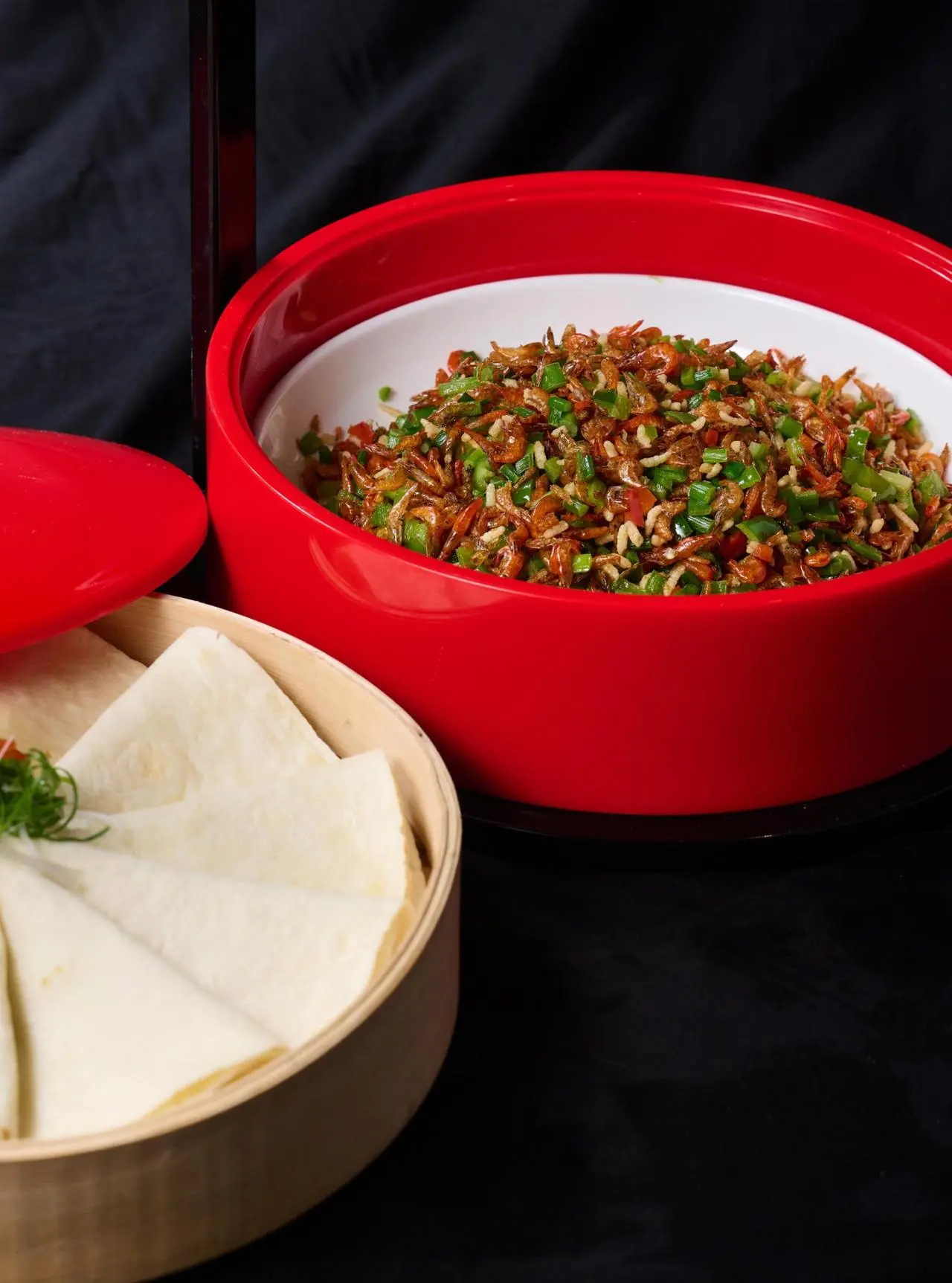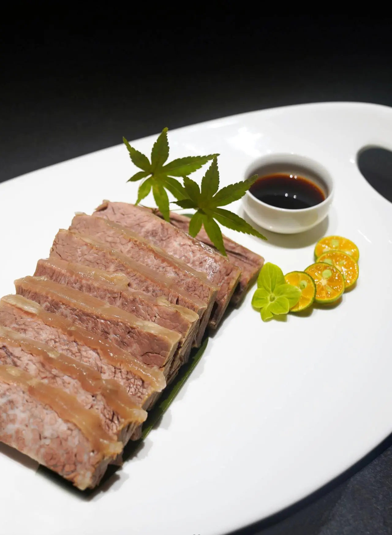 高级雪花牛肉用大量茉莉花熏制,底下用滚烫的鹅卵石保温,温香细嫩的牛肉伴随着茉莉花的馥郁清香,蘸上精心配制的调料后,牛肉鲜美丰润的口感让人立刻就有满满幸福感。