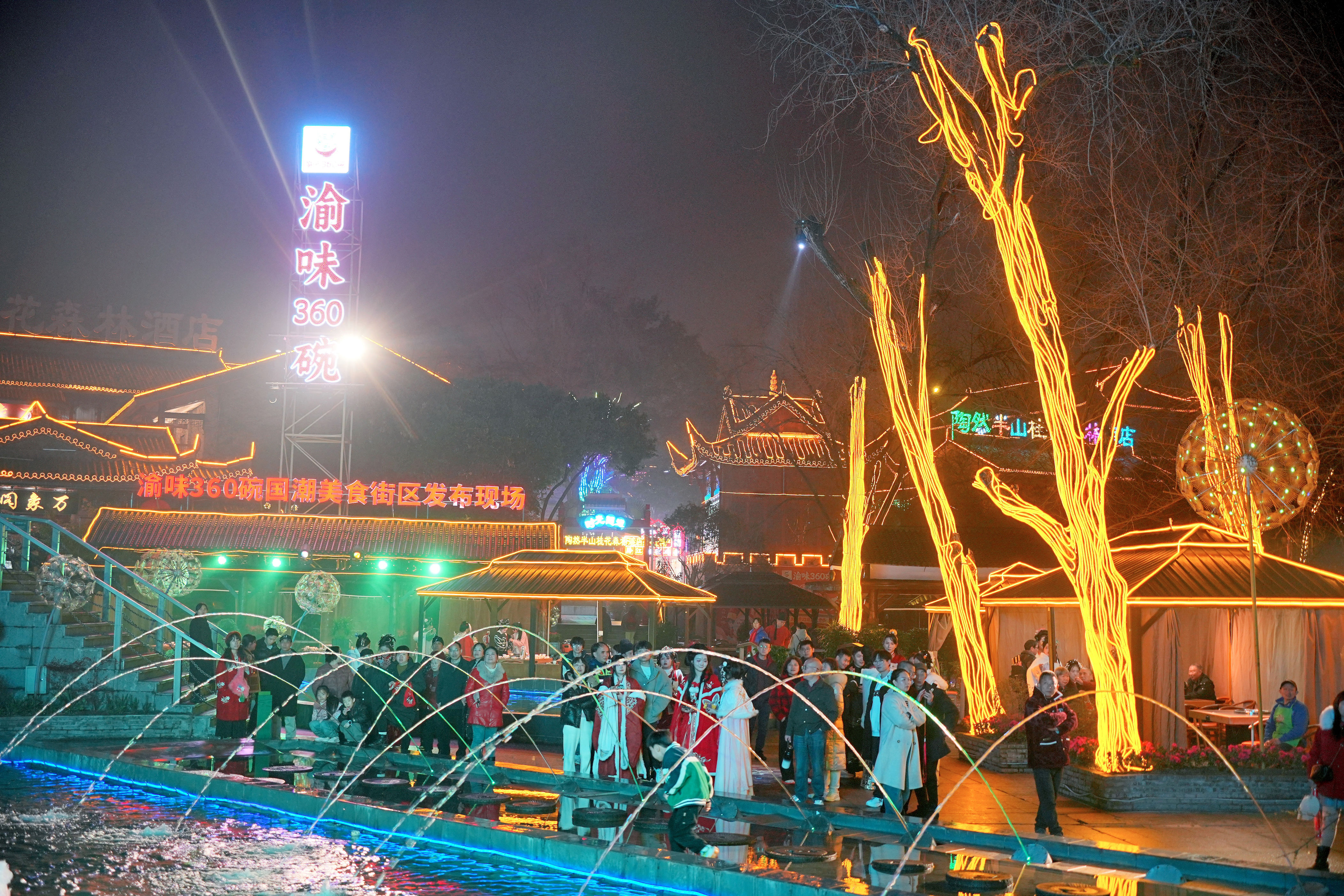 1月23日晚,“渝味360碗”美食街区开街仪式暨“万名华侨华人在重庆过大年”启动仪式在江北区鸿恩坊举行。